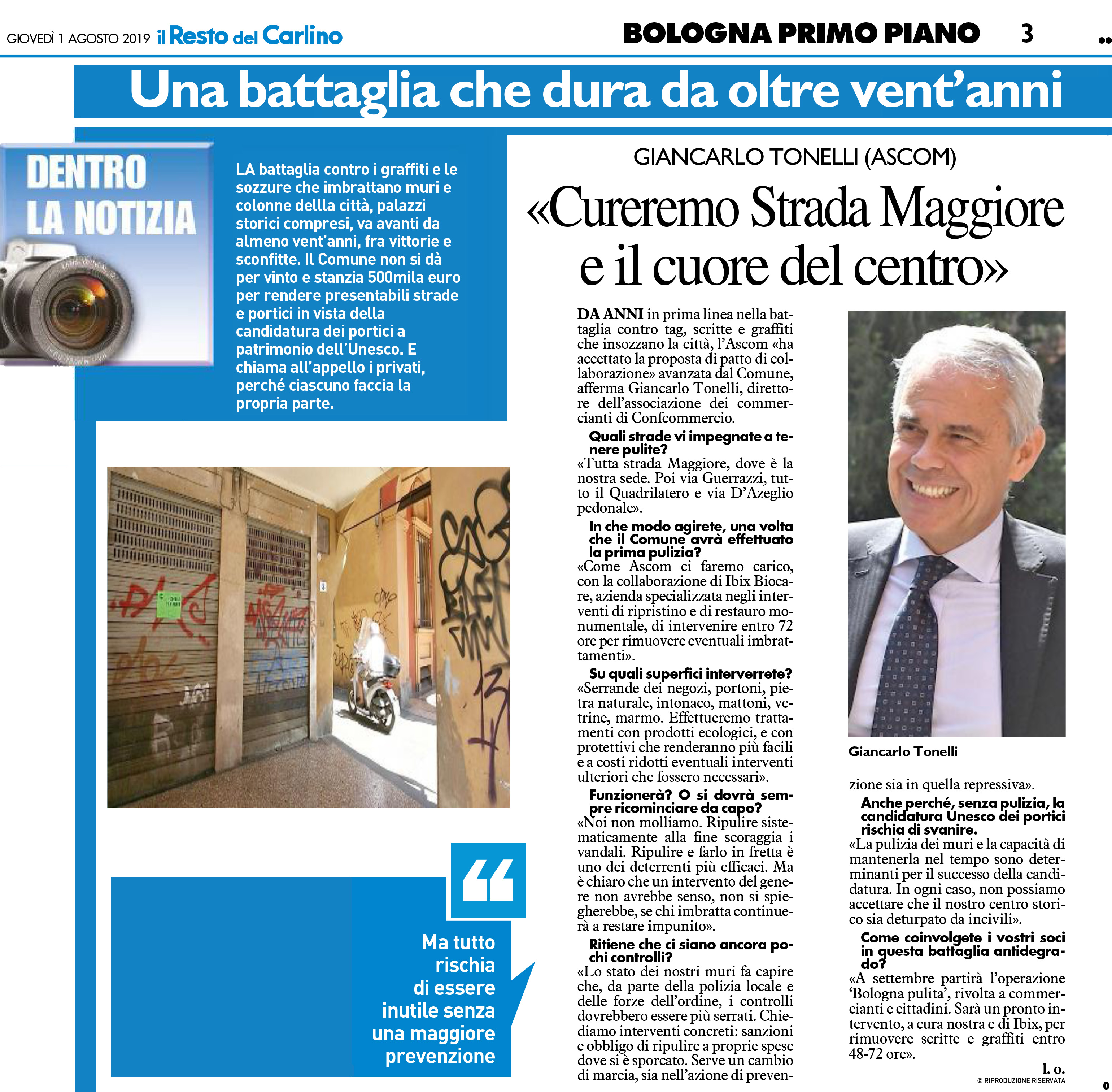 Al via l'iniziativa Bologna pulita 2019, Giancarlo Tonelli, Direttore Generale Confcommercio Ascom Bologna, promette di ripulire la città dalle scritte sui muri del centro, IBIX sarà l'arma segreta contro il vandalismo!